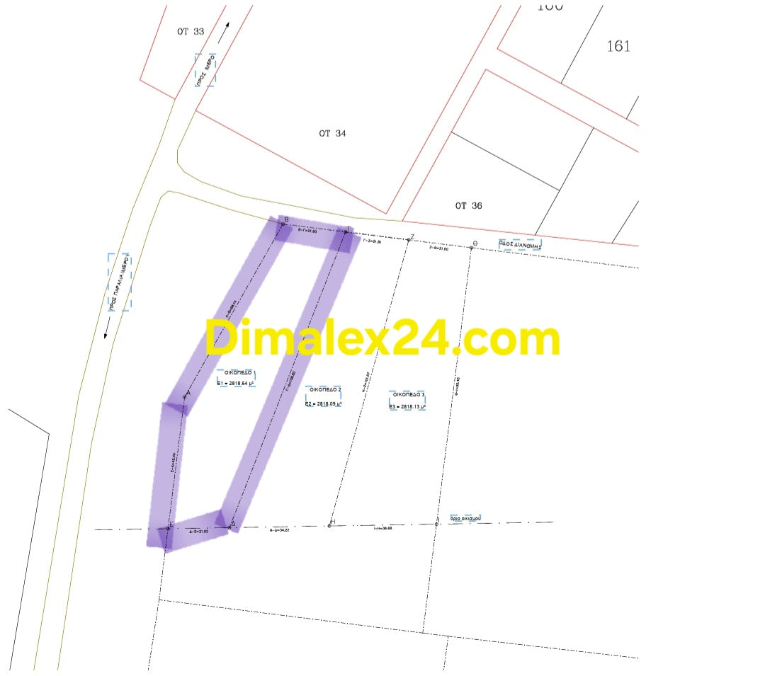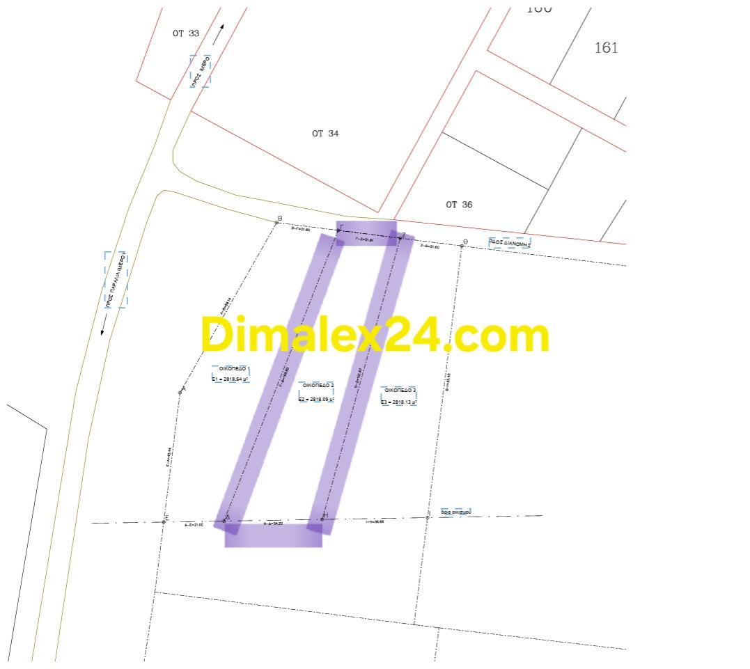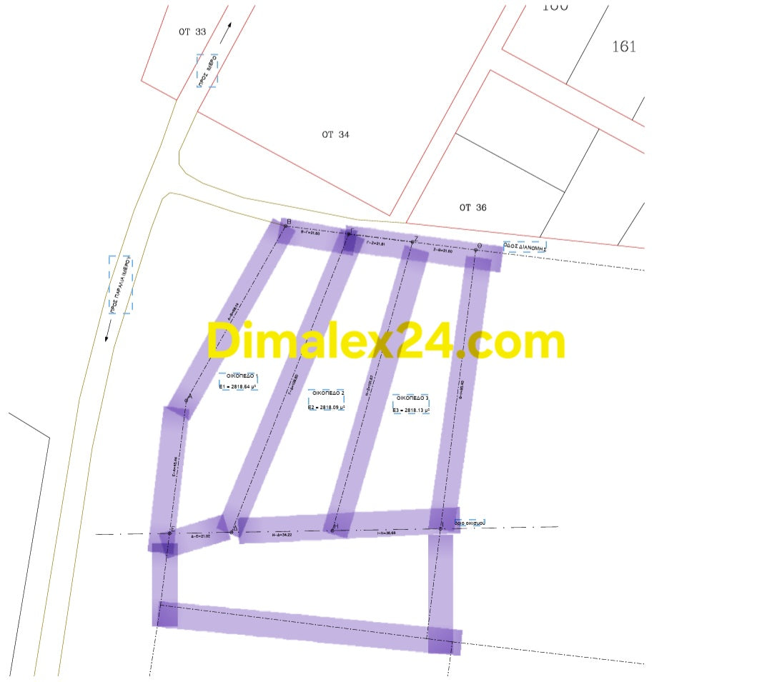 Парцелът е разделен на 4 отделни имота, всеки с площ от 2818,64 кв.м: